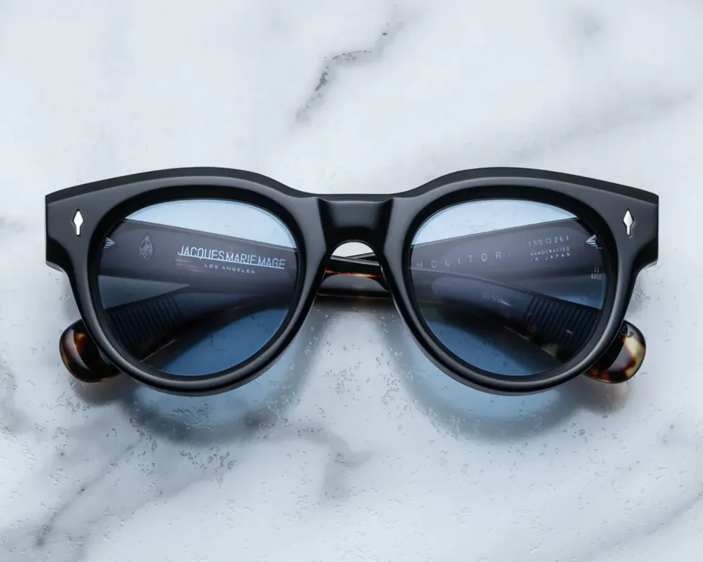 Jacques Marie Mage DIANA are minimal and lightweight round sunglasses made in Japan. Inspired by Diana Ross, 100% beta silver titanium frame, hidden zipper with burgundy epoxy rod tips, custom nose with logo and hair engraving, base 2 lens with anti-reflective back and 100% UV protection. The Swinging Sixties, a marriage of soulfulness and psychedelia, inspired the creation of Diana's shows by Jacques Marie Mage. A reference to the glasses worn by Diana Ross, these lightweight round titanium frames are the perfect canvas for the masterful range of lens colours available. The ultimate expression for the thinner faces.