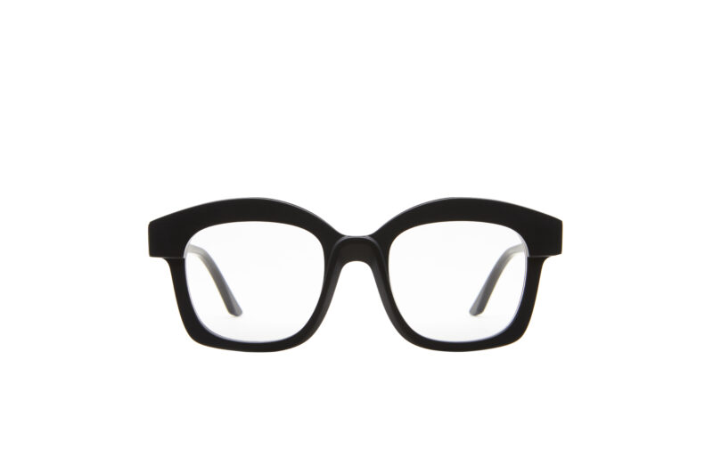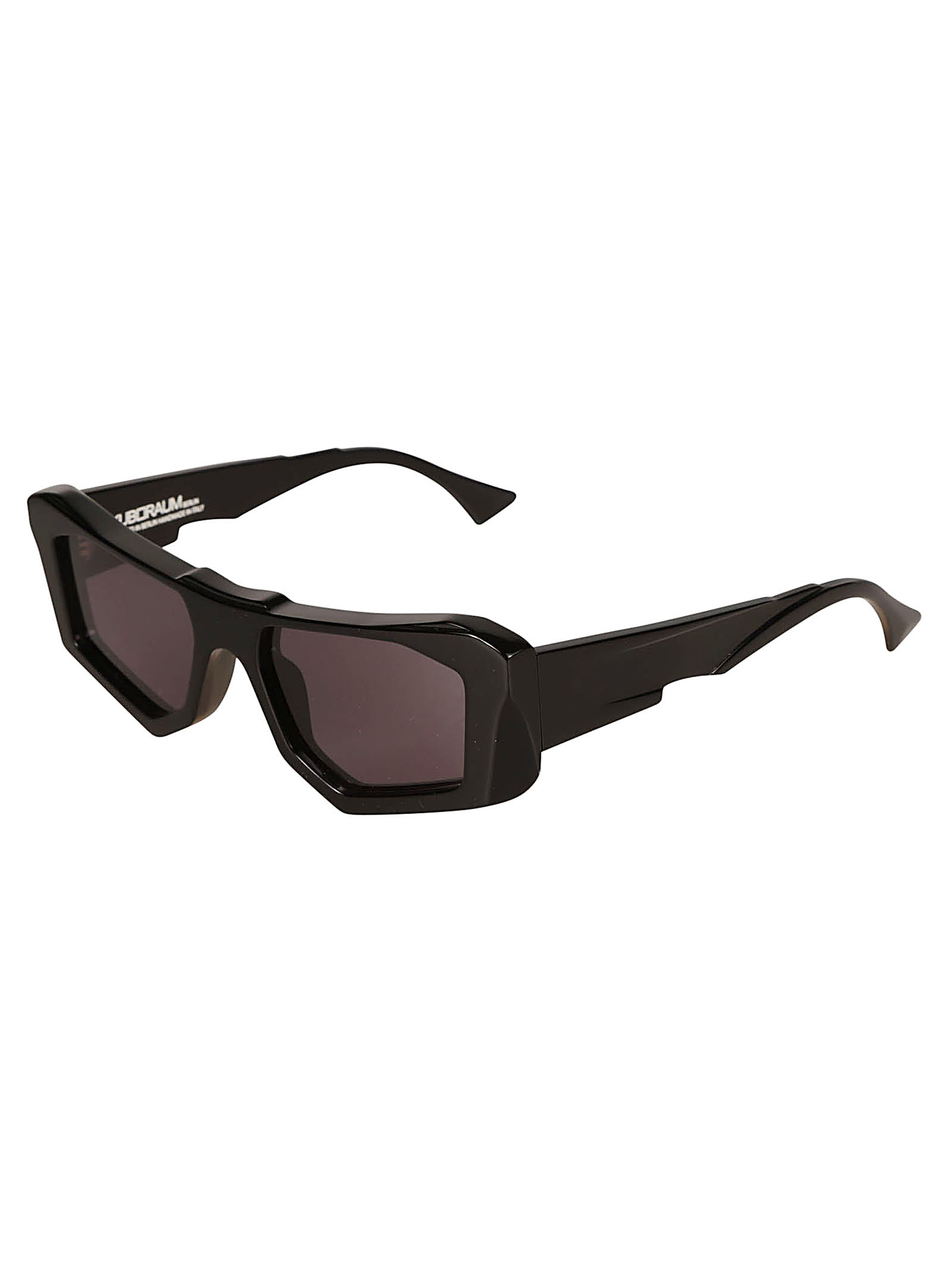 Kuboraum MASK F6 - BLACK SHINE sono occhiali da sole rettangolari cat-eye spessi e spessi e taglienti realizzati in Italia. Presentano una montatura nera in acetato Mazzucchelli, aste in acetato scolpite e lente grigia con protezione UV al 100%.